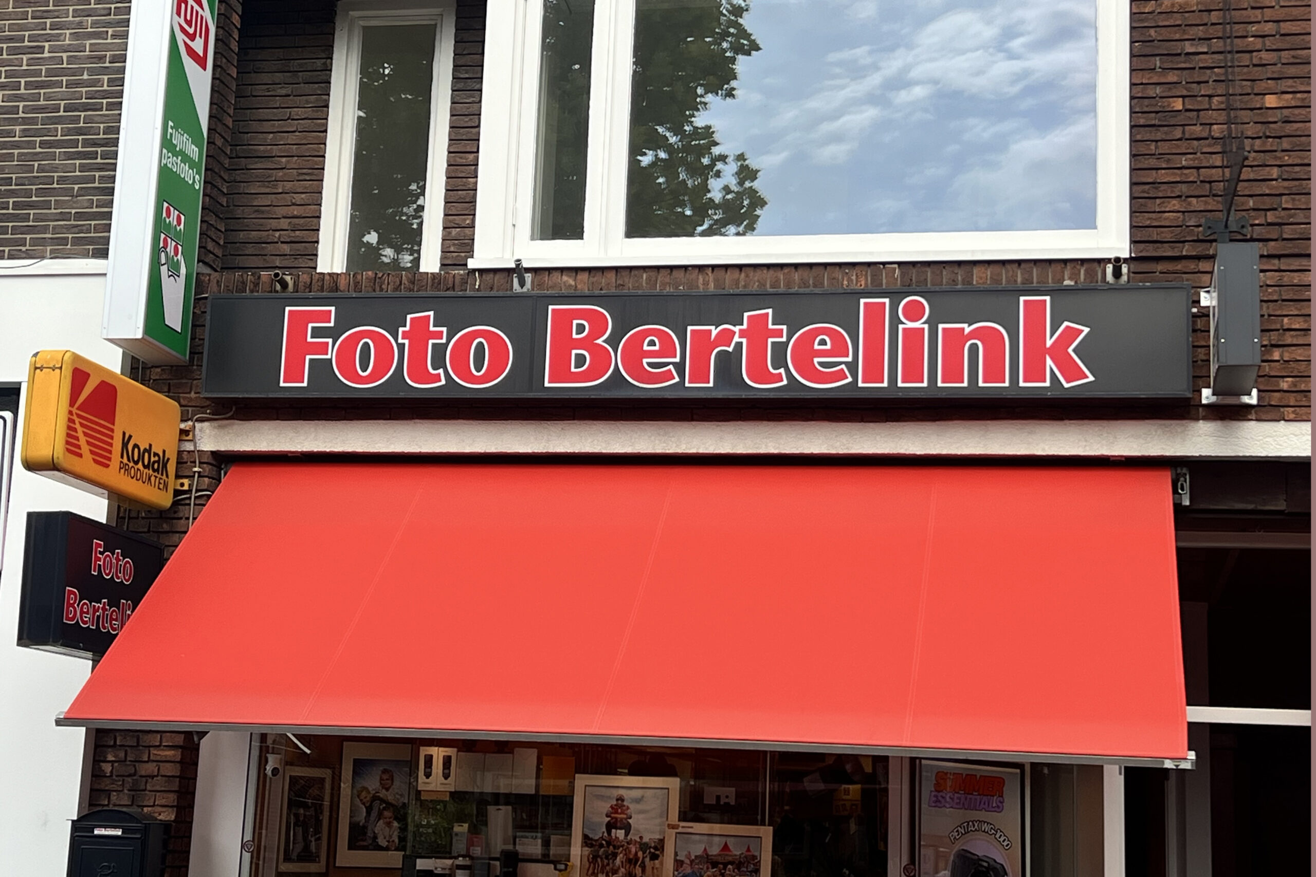 Foto Bertelink is een fotograaf en fotohandelaar gevestigd in het centrum van Hengelo, direct onder de stadhuistoren. Naast pasfoto's, fotocamera's, objectieven, verrekijkers en statieven, bieden wij ook een uitgebreide collectie cameratassen, albums en lijsten. Onze specialiteit is echter de foto hobby. Onder andere Hama foto-accessoires, fotochemicaliën en doka-artikelen. Onze fotoservice print dagelijks formaten van 10×15 cm t/m 60×90 cm, en kan in overleg binnen een half uur klaar. Wij printen digitaal en analoog, op fotopapier of op canvas. Daarnaast ontwikkelen wij hier nog zelf uw analoge film, kleur en zwart-wit.
